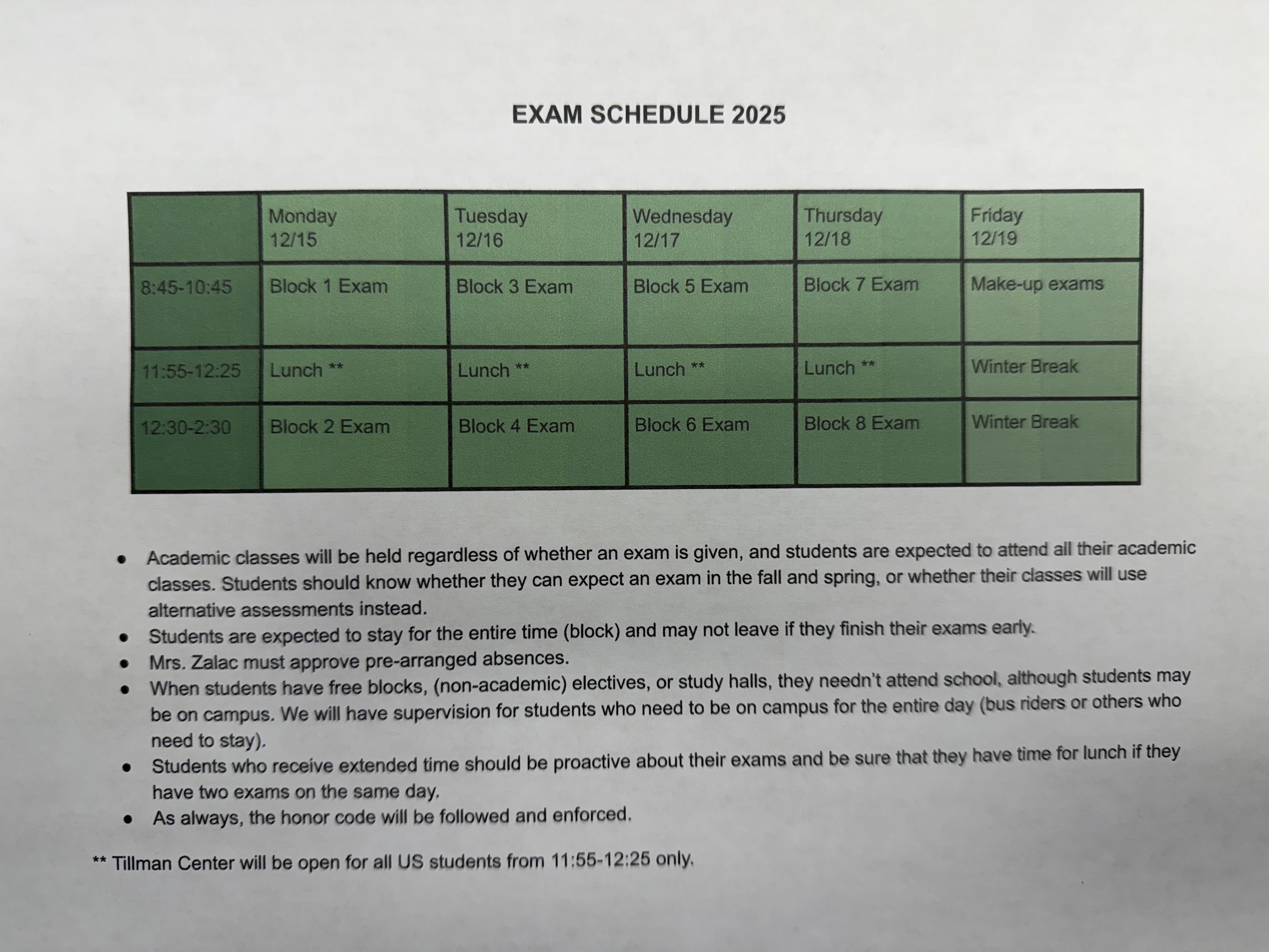 Wednesday, Dec. 3, B Week, B Day – Special Schedule – Holiday Celebration (see below)