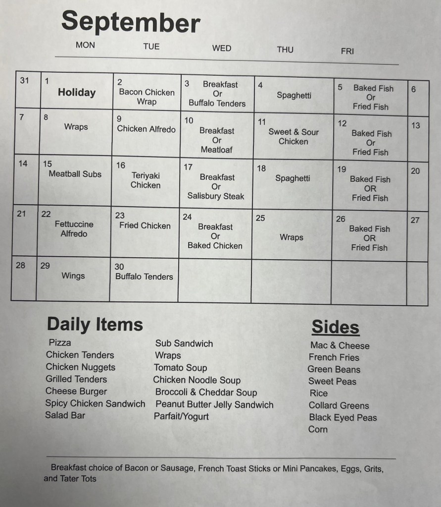 September Lunch Menu